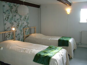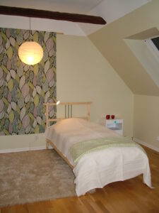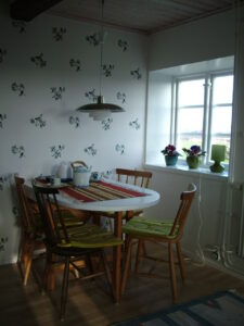 Vid sidan om allrummet finns ett mysigt sovrum med takfönster åt Ö.