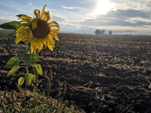 Gavellägenhet med fönster mot Ö & S. Stor uteplats åt S med vacker utsikt över slätten.